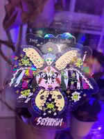 Available again! 4.5x4.5” Frog Sprite Seraphim Rainbow Maker Decal for making tons of Rainbows in your space or in your car! In appreciation of the infinite creator and our Frog Sprite Seraphim guides <3. Glossy, prismatic rainbow colors produced in circular patterns.